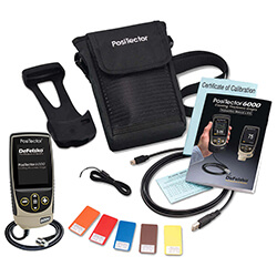 The DeFelsko PosiTector 6000 FTRS1 Standard Coating Thickness Gage Kit includes everything needed for testing: - PosiTector Standard Gage Body BDYSTD
